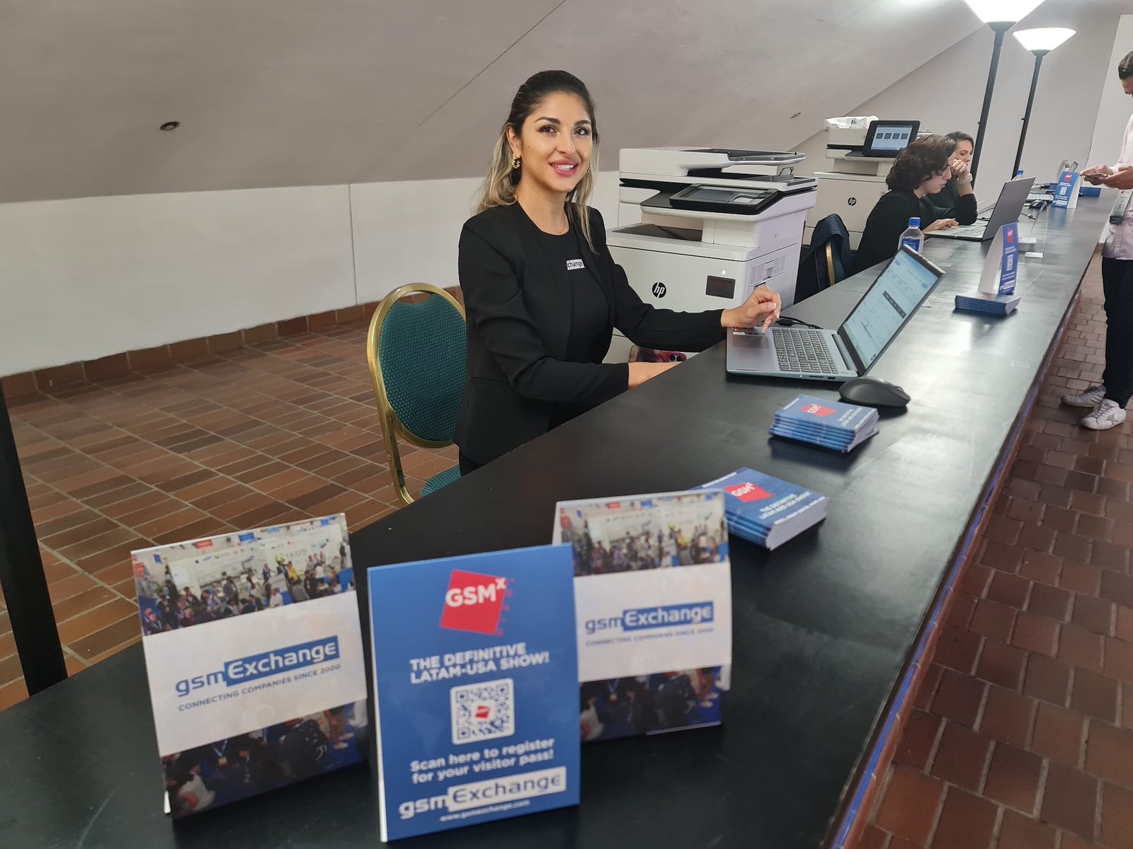 Raquel Ceo con organizadores de GSMExchange